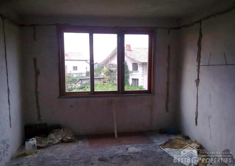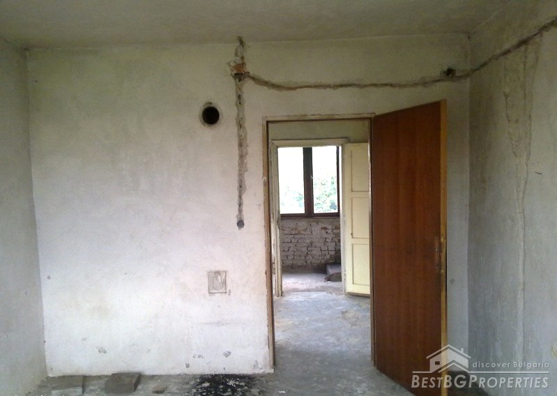 The offered house has total living area of 240 sq m situated in close proximity to the village center. It is brick construction from the 80s, comes with a yard 340 sq m, and a garage. There is electricity and water inside, sewerage. The house needs finishing works - installations, plastering, has old wooden windows.