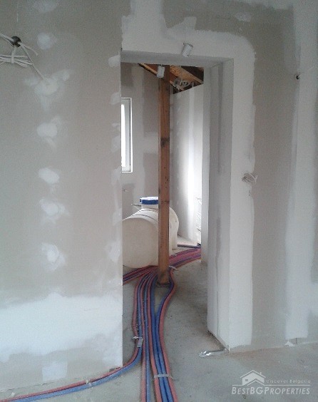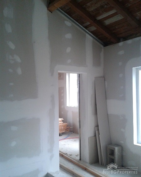 The house is newly built, completed in 2009. It is on Bulgarian stage of finishing, meaning – on plastering and putty. Thus the future owner would have the chance to lay the final touches according to his own tastes and desire. The property is on the main street of the village. There is three phase electricity, water and sewer, local heating, solar installation for the hot water.