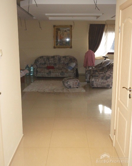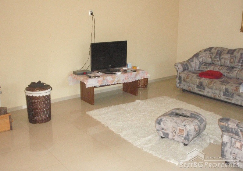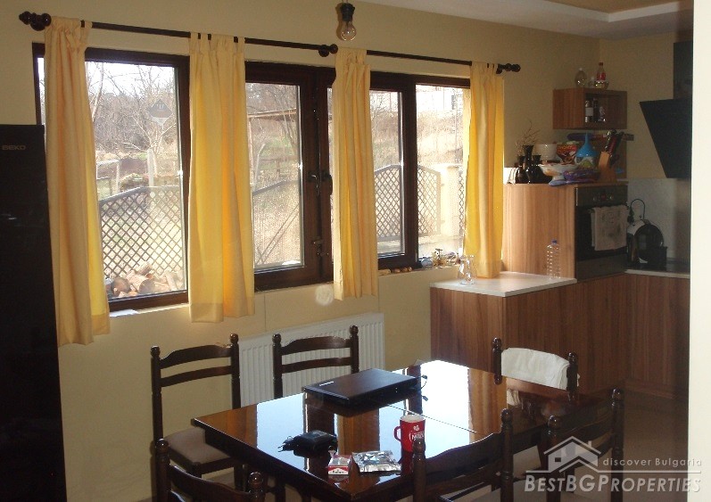 All rooms are finished with high quality materials. On the first floor there are tiles and laminate on the 2nd. The house was built in 2005. In 2014 was made a renovation which adds 20cm insulation to the roof, wall insulation, 5 chamber PVC windows with triple glazing, drainage system around the house. The heating is via fireplace with water jacket and boiler.