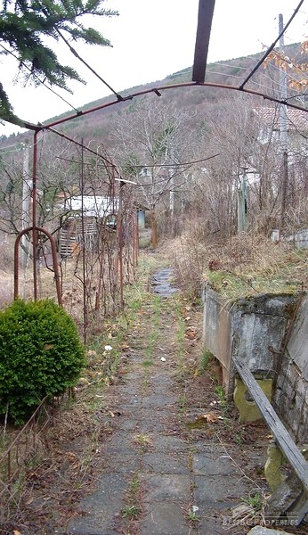 The yard is 800 sq m in size. There are many additional outbuildings, a workshop, outdoor toilet, space for a car, many fruit trees and vines. This property comprises with amazing view! There are friendly neighbors, quiet area, no theft. There is electricity, but unfortunately - no water. At 30 m away there is a tap, and also there is a possibility for drilling for a well. The house comes with furniture - tables, chairs, beds, cabinets, stove, fridge, TV and more.