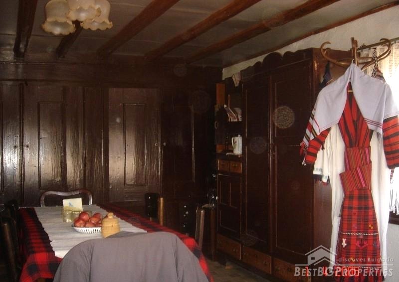 The property consists of a traditional house built on a very large plot and another smaller guest house. The house is built in the traditional Bulgarian revival style. It is made mostly of stone and wood, beautifully decorated. Beautiful wooden ornaments decorate the house from the outside and the inside. The total living area of the house is around 200 sq m, distributed between two floors. The first ground floor comprises a tavern and two rooms. The second, upper floor includes 4 separate rooms. Water and electricity are provided in the house, also telephone and TV.