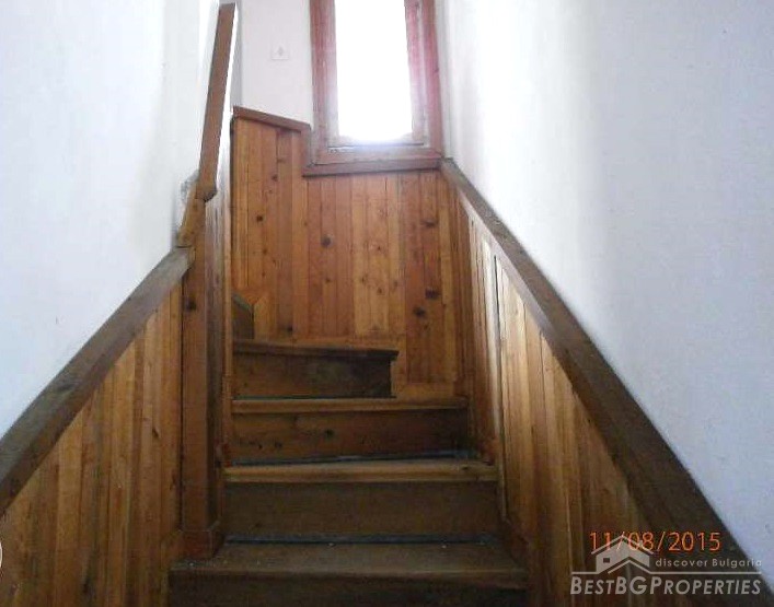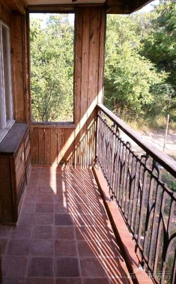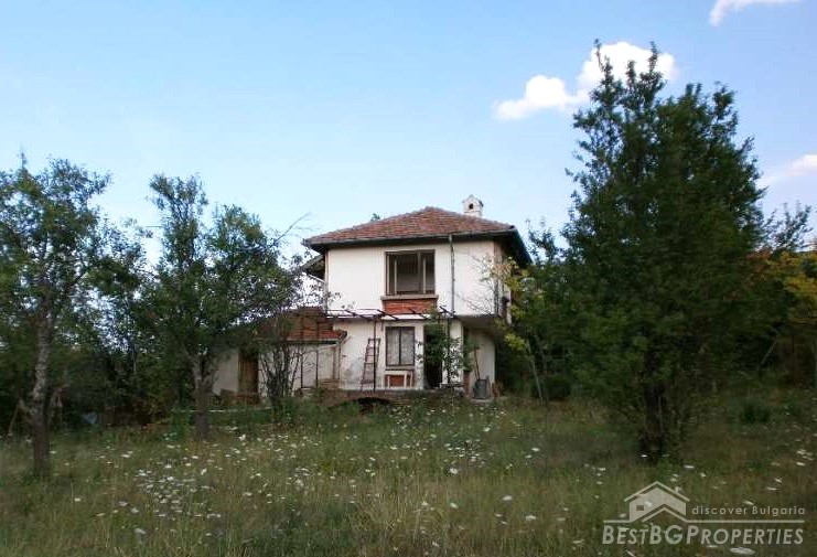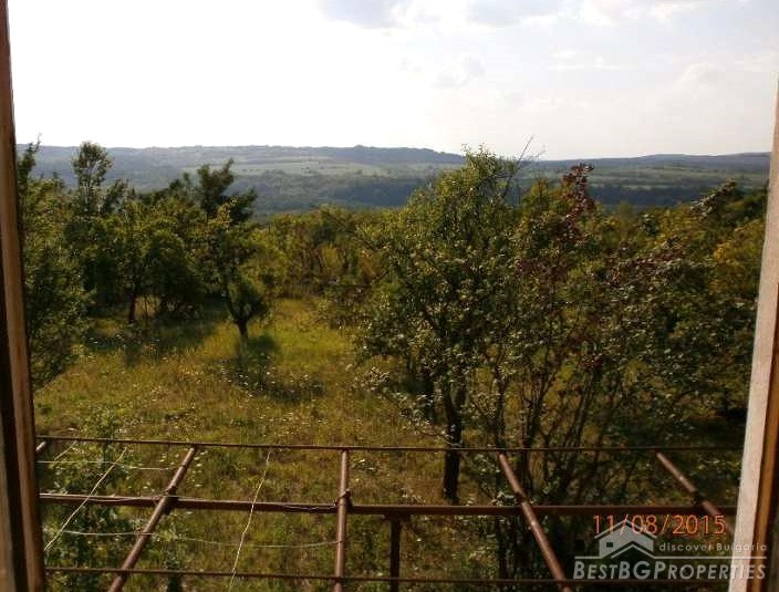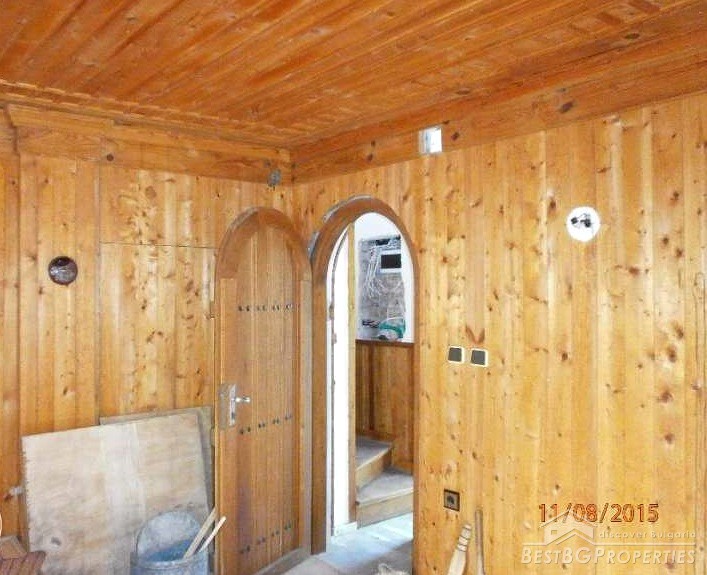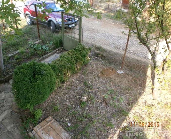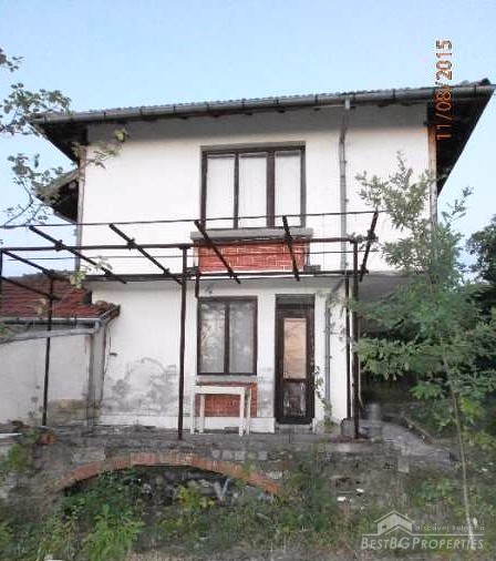 The plot is 1012 sq m and the total living area of the house is 67 sq m. The house was finished in the Renaissance style. It has unique view of the Balkan Mountains. The property is accessible by car. The house consists of an entrance hall, a tavern with solid fireplace and kitchen, not finished (cement) bathroom and a laundry room on the first floor. The second floor has a small hallway between the two bedrooms and a balcony. The floors are connected by an internal staircase.