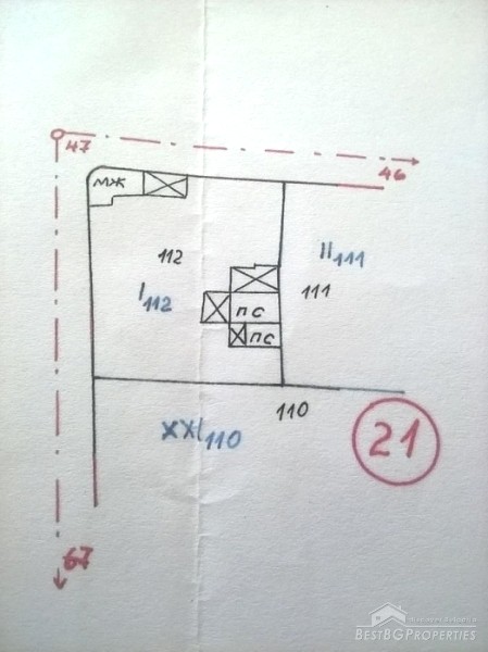 The property consists of a spacious house, large yard and few additional outbuildings. The house has total living area of 125 sq m. It is single-storied and consists of a kitchen, bedroom, living room, bathroom and a WC. There is also a basement – 40 sq m and an attic premise – 40 sq m.