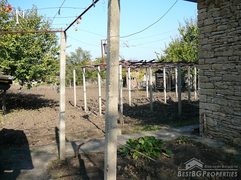The house is one story, stone built and with around 100 sq m of total living area. It is built on a spacious plot of land - 900 sq m in size and is located in the center of the village. The property faces and asphalted street through which has easy access during the whole year. The house consists of four rooms and a service premise and the yard includes many wines, fruit trees and other sorts of greenery.