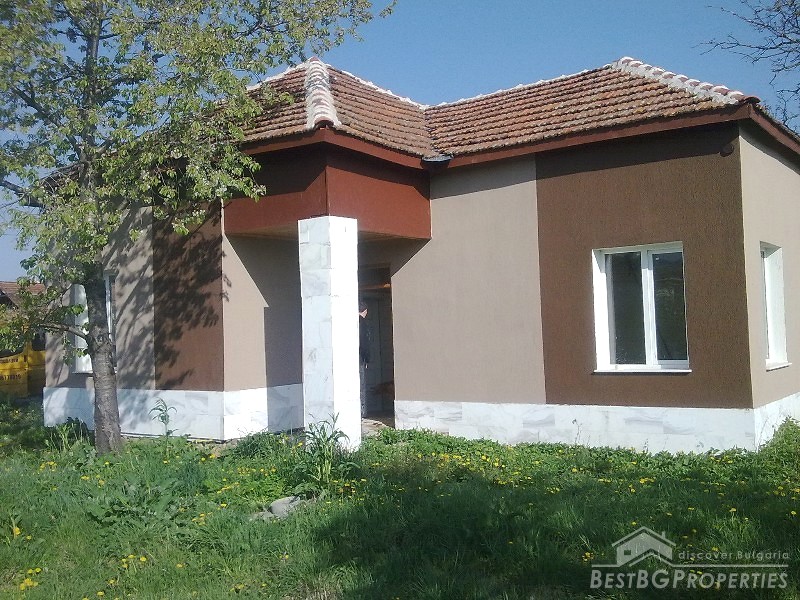This is a small, single storied house for sale, after full outside renovation. The house has total living area of 70 sq m and is built on a plot of land with size - 1600 sq m. In the half underground floor there is a basement. On the main residential floor there are three rooms and a corridor. There is water in the yard, electricity inside the house. The property is situated at the end of the village. The house is in need of inside renovation.