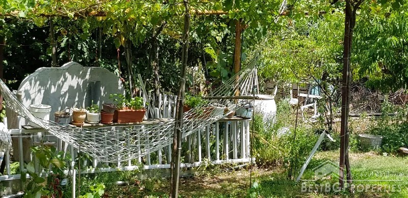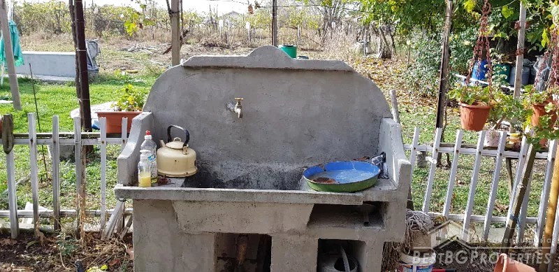 The yard is 1500 sq m. In it there us a vineyard and a vine with dessert grapes, many fruit trees, flowers and a large greenhouse. There are additional solid farm outbuildings as well.