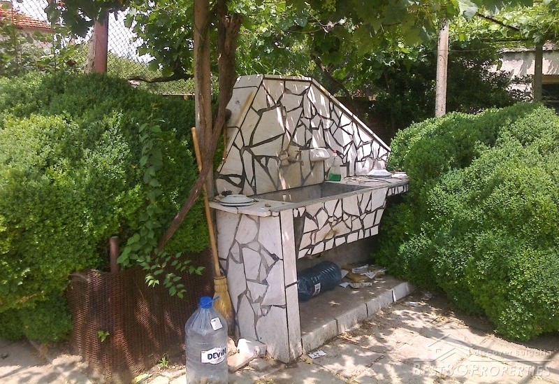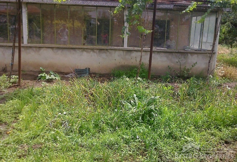 The house is single storied with total living area of 90 sq m. The living space is distributed between two bedrooms and there is inside bathroom. The living room is equipped with fireplace. There is no furniture included. The house is brick built. It comes with a large plot of land with size 3000 sq m. In the yard there are lots of fruit trees and vines, additional agricultural buildings, summer kitchen and a garage.