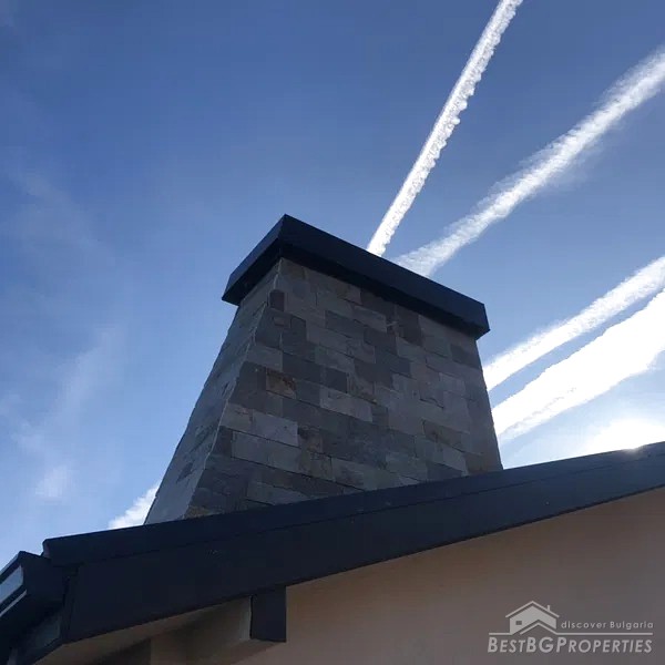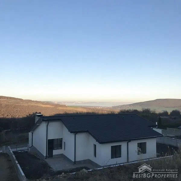 The house offers a wonderful sea view. It is built in an ecologically clean area, right next to the Batova Natural Park. The total living area is 246 sq m. It is distributed between a living room (45 sq m), three bedrooms, three bathrooms, an office and a panoramic terrace. There are also two garages and a storage room. The connection between the two floors is via an external and internal staircase.