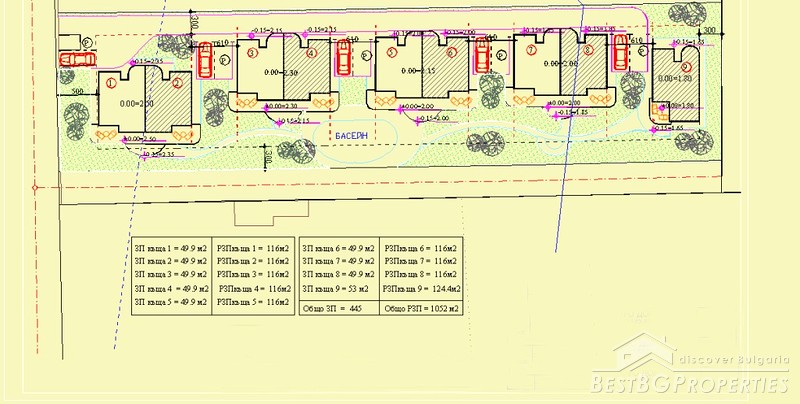 The complex is located in the western part of Sunny Beach, 1700 meters from the beach. This brand new complex include 9 family houses with a selection of 2 and 3 bedrooms, each house of 116-124 sq.m. built-up area with adjoining land of about 210 sq.m, designed car parking for each house and private garden.