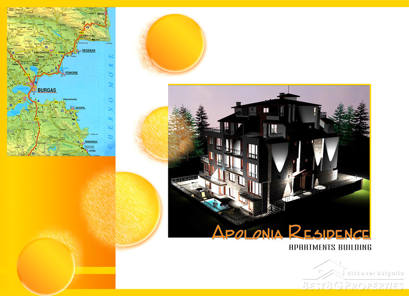 Apolonia residence is located in one of the most beautiful and picturesque regions of the Bulgarian Black Sea coast - the ancient Sozopol /city-state, found in the year of 620 B.C. under the name of Apolonia-Pontica/.The complex is situated on a hill, which appears the highest point in the locality - ecological paradise, bathed in sunshine, with incredible bipartite panorama to the whole Sozopol bay. The unique exposure - south-east-west - gives opportunity to the customers to select between apartments, from which they can view the sea sunshine or the wonderful sunset ... and why not both?Apolonia residence is designed so that to combine the romantic historical spirit of the resort town, the beautiful nature and comfort of the modern building. Its architectural decision is in the traditional style of Sozopol with the idea of eternity. Luxury, aristocratic and strategically located it consists of 22 various in size and disposition apartments, maisonettes and studios, offering any conveniences to their occupants, combined with the mandatory sea panorama. By the mythical intensity of antiquity and functionality of XXI century, Apolonia residence is the perfect "second" home for persons with style and affinity to the real worth things.