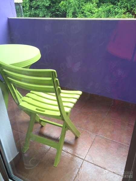 It consists of three bedrooms, living room, kitchen with dining area, two bathrooms and three terraces. Both terraces are glazed. The apartment is on the third floor out of five. The heating is local and via air conditioning. There are also solar collectors. The property is sold together with a basement and a garage.
