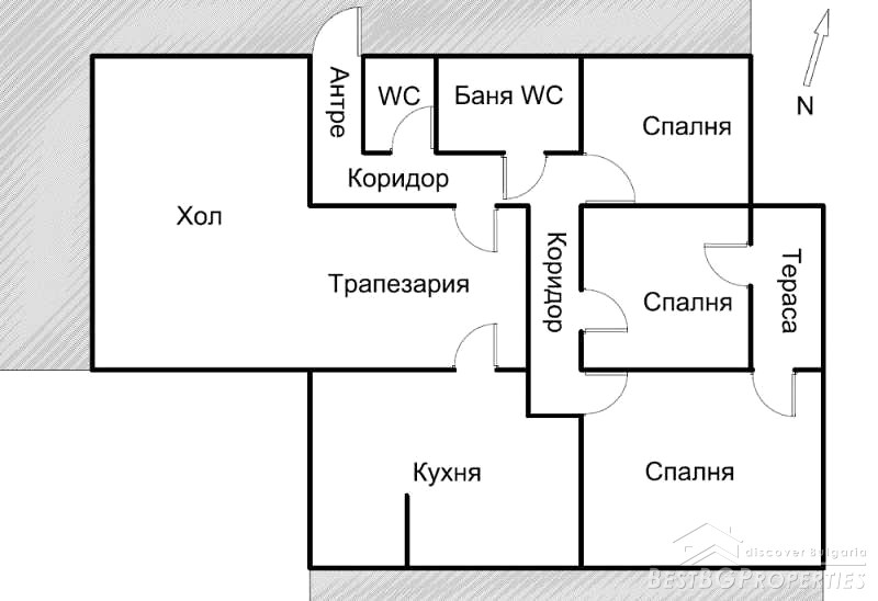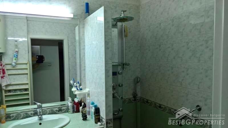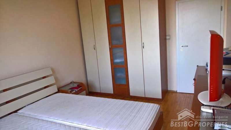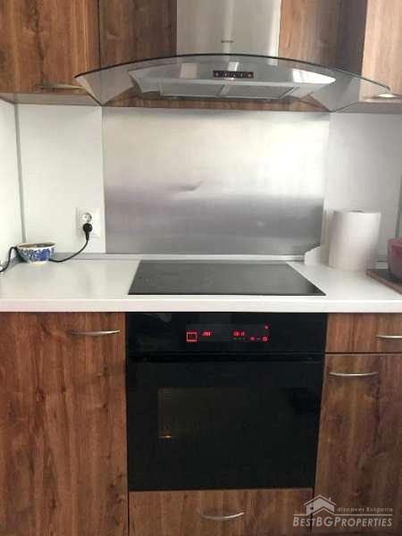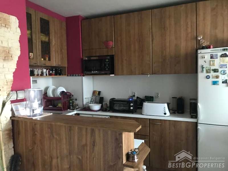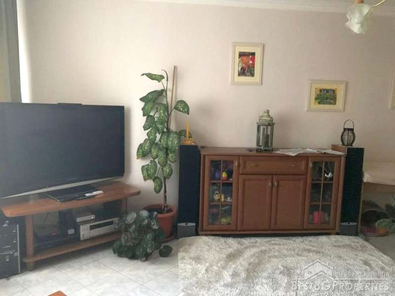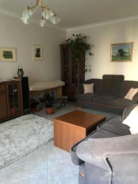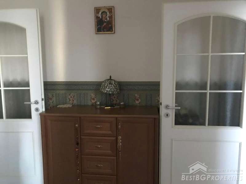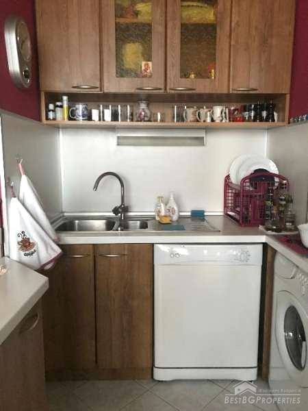 It consists of a large living room and dining area, separate kitchen, three bedrooms, bathroom with WC, a toilet and a terrace. The apartment is very warm, with inside isolation and quality German window joineries. The flooring is terracotta and parquet. The apartment is fully furnished and equipped with modern kitchen appliances.