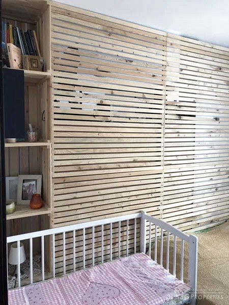 The apartment consists of a bedroom, children’s room, a large living room with dining area and kitchen, and two terraces. One of the terrace has access from the children’s room and the living room, the other only from the kitchen. The property has southeast exposure.