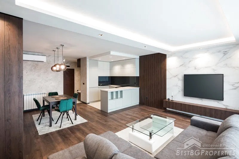 The whole apartment is designed, finished and furnished by interior designers and with high quality materials. The furniture and decorations in the rooms are made to order.
