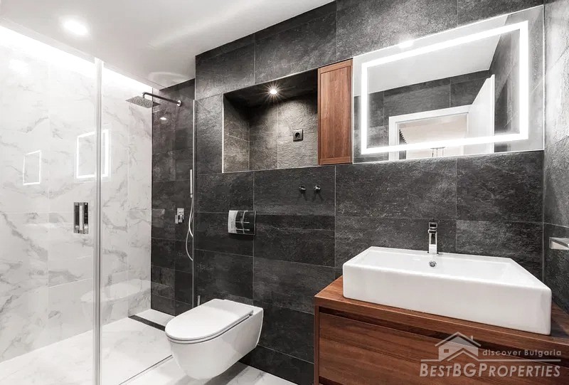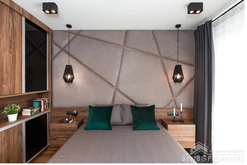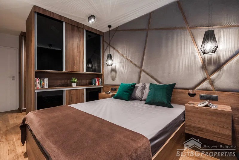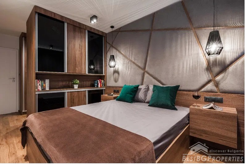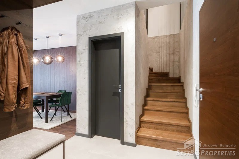 An exclusive two-bedroom maisonette, located 300 meters from Paradise Mall, a metro station and 20 meters from Blvd. Cherni Vrah. The apartment is located in a new, stylish building with Act 16 received in April 2019. The apartment is on the first and second floors of the building and is sold with its own yard of 25 sq m.