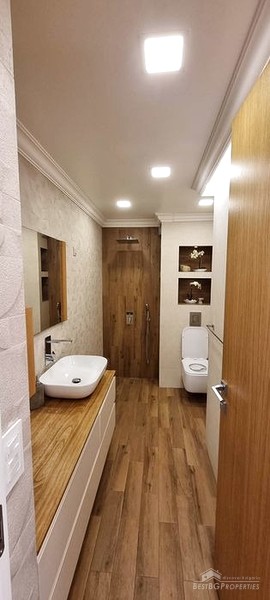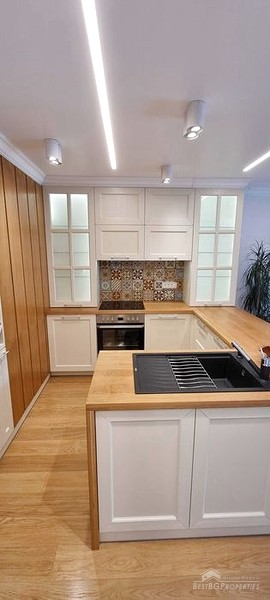 The property is offered fully furnished. All furniture is custom made. The kitchen is extremely functional, made of natural wood with built-in appliances. The heating is provided by electric convectors. The apartment is supplied with three-phase current.
