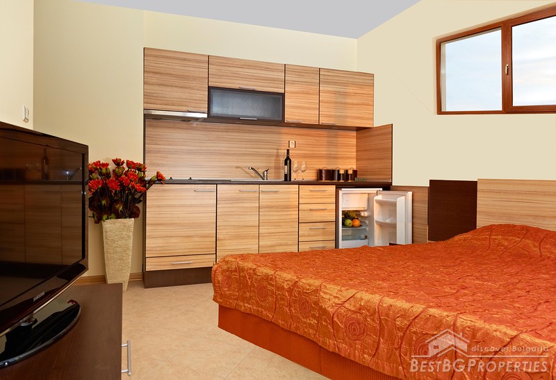 The development is situated in one of the most popular Black Sea resorts-Nessebar which is an ancient town with great history. The magnificent medieval architecture, as well as the ancient traces from different civilizations is a unique opportunity for entertainment. This lovely resort is visited by thousands of tourists every year. Nessebar is located 36 km away from Burgas and its International Airport and 427 km from the Bulgarian capital-Sofia. It is also very close to the pearl of our seaside-Sunny Beach which is a preferable destination for many foreigners. Customers have the opportunity to choose one of three different types of full luxury furniture included in the price of the apartment.