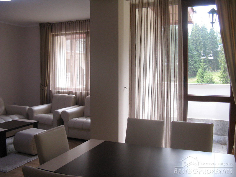 The apartment is part of a large residential complex with prime location right next to the ski track. The complex provides all year round service for people willing to ski in the winter and people who just want to relax during the rest of the year. It is just in a 5 minutes walk from the closest lift station.