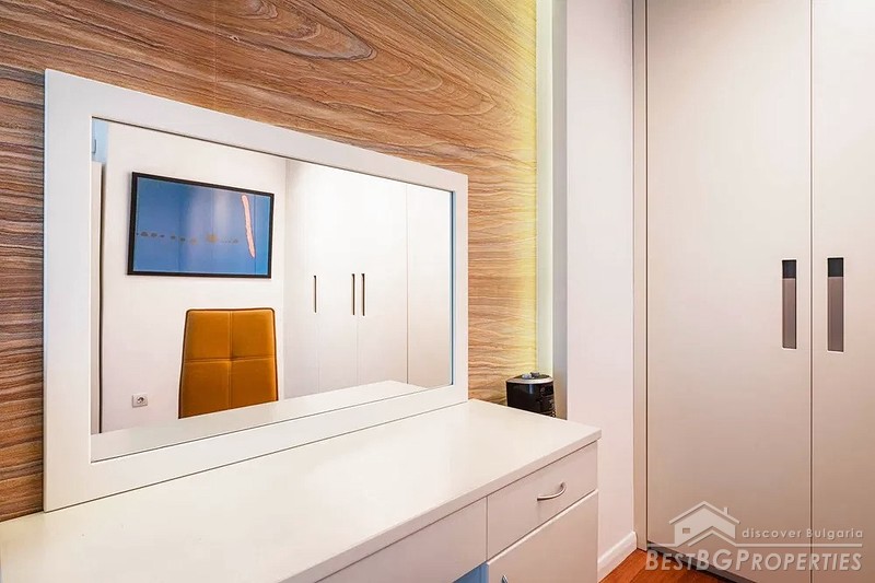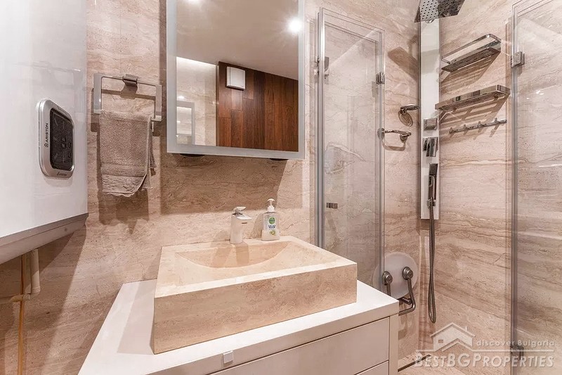 The apartment is on the sixth floor out of seven in the building. Its total living area is 88 sq m. For additional 52 000 EUR there is a garage for sale. It is with an area of 15 sq m, located in the same building, with direct access from the street.