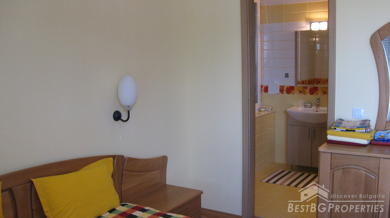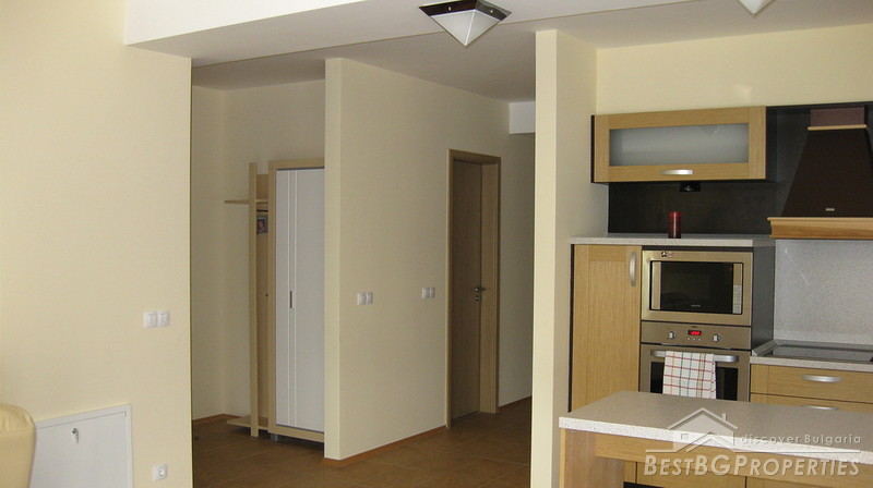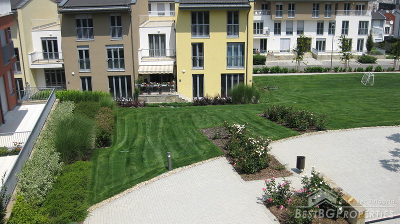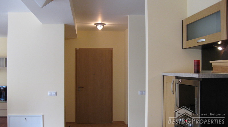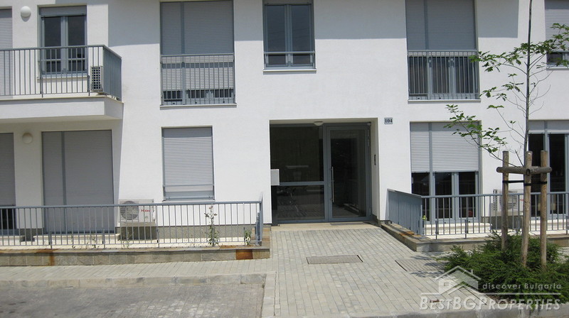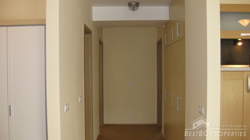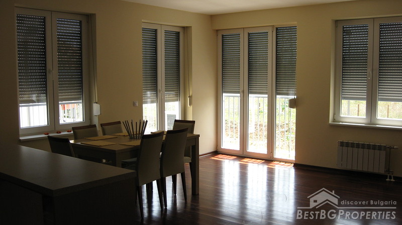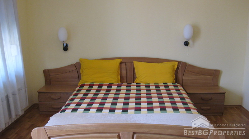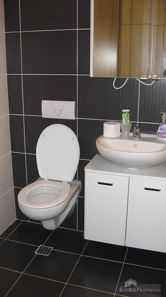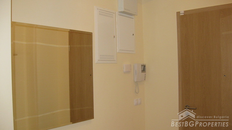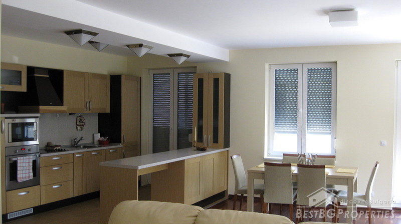 The apartment is a two bedroom type and consists of large living room with kitchen box, and two bedrooms. One of the bedrooms has its own separate bathroom with bath tub. The corridor for the bedrooms leads to the second bathroom which is equipped with shower cabin. There is one balcony with nice view. The price for this apartment also includes an underground parking. The heating is due mounted radiators and also two air conditioners. The total living area of the apartment is 130 sq m and it is set on the second floor of the building. The apartment is completely furnished and ready to move in. The complex has 24 hours security and video surveillance.