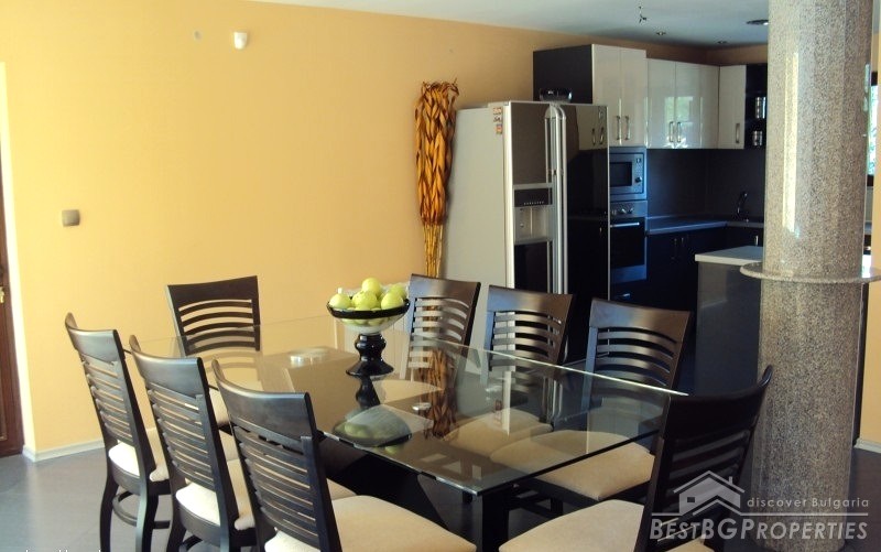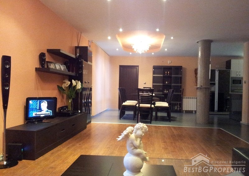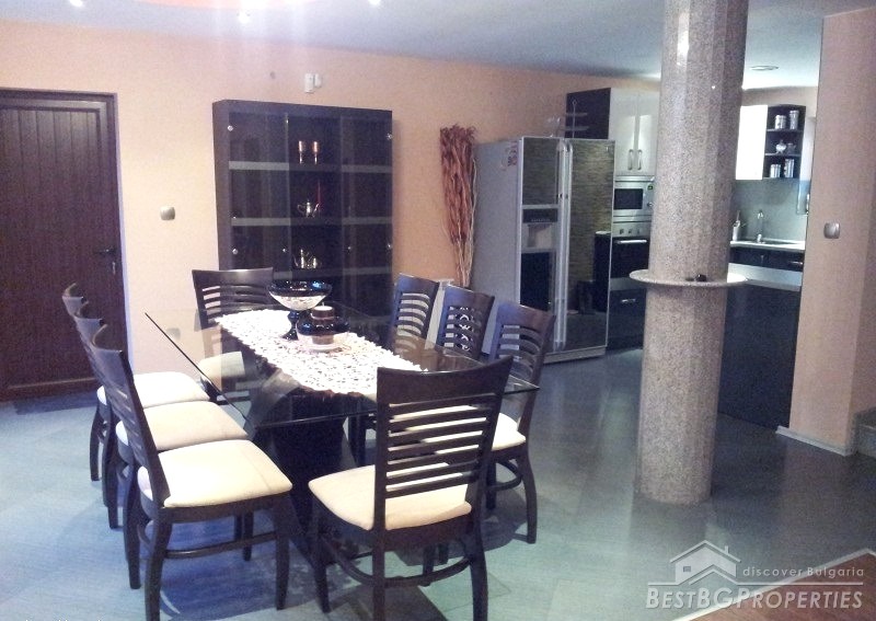 The house was built in 2009 and has total living area of 230 sq m with yard - 750 sq m. The first floor consists of a large spacious room designed for a living room with kitchen and dining, equipped with two three-meter French windows overlooking the back yard, bathroom with WC, wet room, staircase, room designed for the central heating and a double garage. The second floor consists of an entrance hall, bathroom, three bedrooms, closet in one of the bedrooms, and two balconies. The floorings are laminate parquet on the second floor, granite tile on the first floor and the stairs are also finished with granite. The yard is terraced and is surrounded by a fence. There is electricity, water and sewerage, drainage system around the house, security system. The house is double insulated - outside with polystyrene and inside with wool. Floors and ceilings are also insulated. There are German 5-chamber PVS window frames with K-glass, automatic garage doors, armored front door.