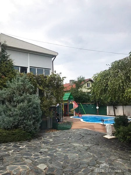 The house is three-storey, with a total living area of 300 sq m. The yard is 534 sq m. The parcel is well-maintained and landscaped. There is a swimming pool (40 cubic meters) and an additional building for storing materials.