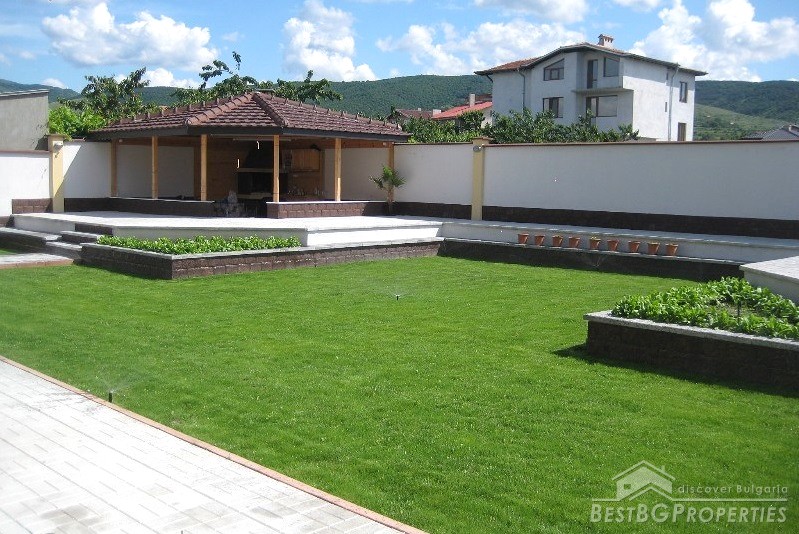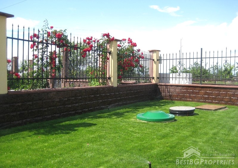 The yard is perfectly landscaped and arranged. There is automatic irrigational system with its own water supply. In the yard there is also a barbeque – 25 sq m, small swimming pool – 20 sq m and many other extras.
