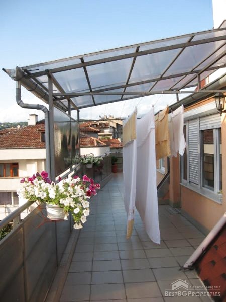 The apartment is sold with all of the furniture. The kitchen is custom made with built-in electric appliances – highest-class oven and ceramic hot plates, refrigerator with freezer, etc. The master bedroom is also furnished with custom-made furniture - built-in wardrobe, bedroom and chest of drawers. Flooring - laminate in all rooms, polished granite tiles in the corridor. The windows are equipped with aluminum blinds and there are air conditioners installed. The apartment has video surveillance.