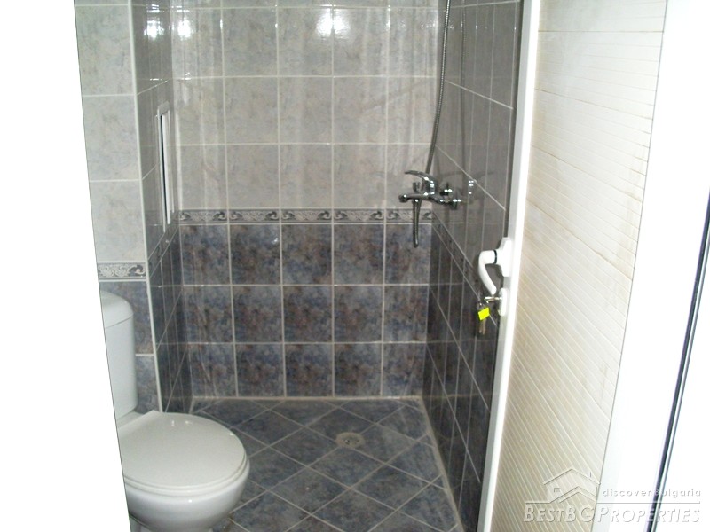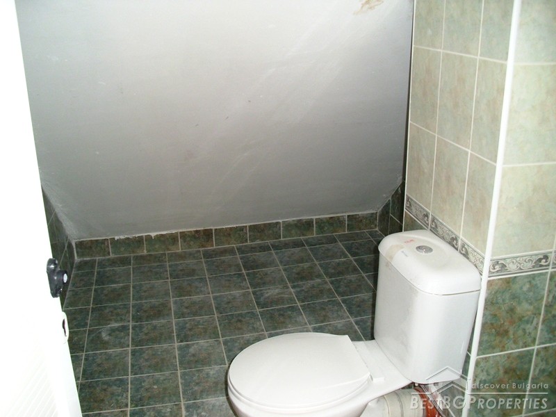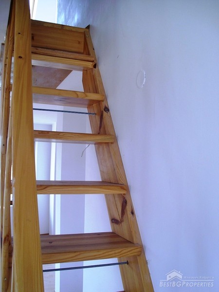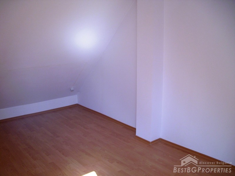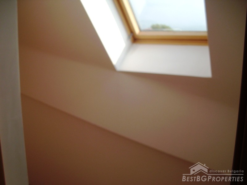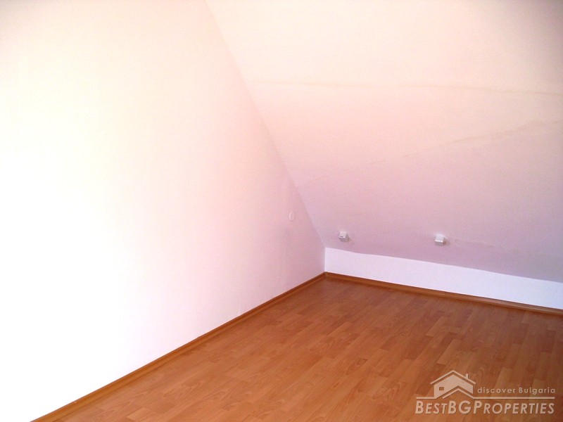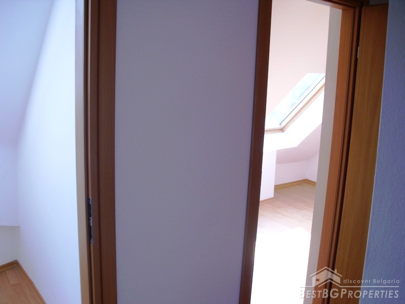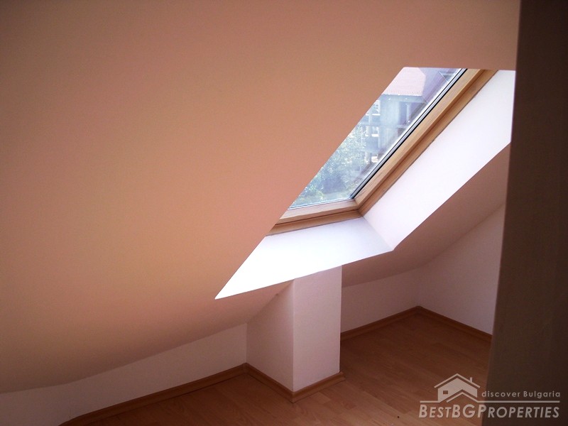 The maisonette is located on the last - fourth floor of the building. It is on two levels as the first level consists of a spacious living room with kitchen box, one bedroom and one bathroom, also two large balconies one of which with view to the mountain. The second level comprises two separate bedrooms, one with ensuite bathroom with WC. The maisonette has total living area of 117 sq m. The price includes full finishing, fully equipped bathrooms with WCs and also a garage!