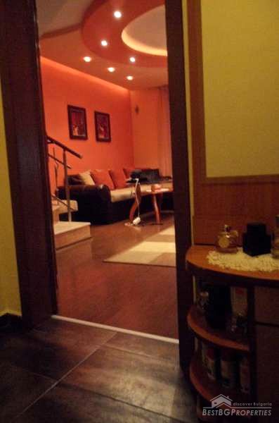 The apartment comprises of two separate apartments joined as one – maisonette type. The living area is 115 sq m, distributed on two levels. On each level there is a separate bathroom with WC. The first level consists of a large living room with kitchen and a glazed terrace. The second level comprises with the children's room and a bedroom.