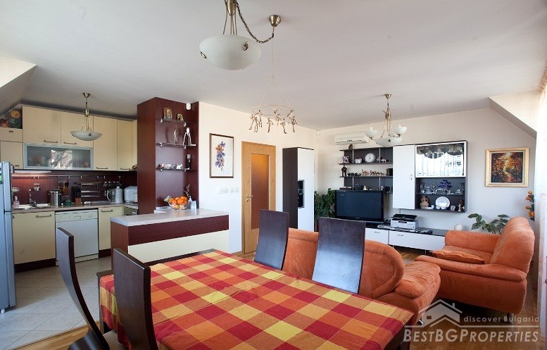 This is a luxury maisonette apartment for sale with a clean area of 160 sq m, located in a small 4-storey building finished in 2006. The building has private garden and wonderful views of the Vitosha and Stara Planina.
