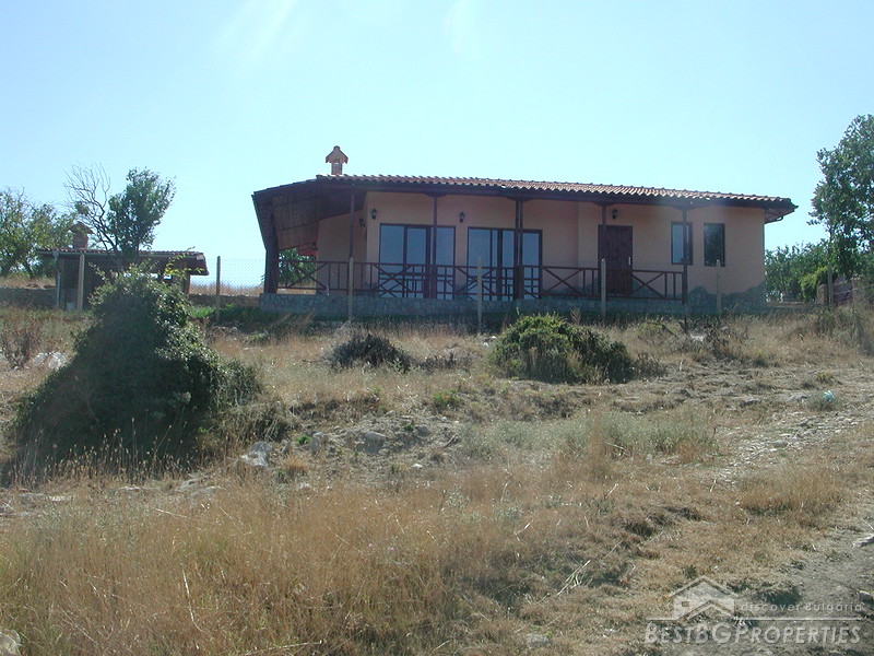 We would like to bring to your attention a small complex of four identical houses with lovely sea view. The village is located 17 km from Varna and the beach. The house is built in the typical style for the region :1 floor, big windows towards the sea and urban panorama, big veranda, wooden and stone ornaments. The total living area is 110 sq m and comprises an open plan living area , 2 bedrooms , bathroom and WC. The house is sold furnished. The complex will be surrounded by a stone fence.This is an excellent place to spend your vacation – extremely close to the beach and still far from the noise and the crowds!