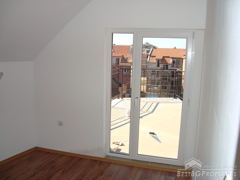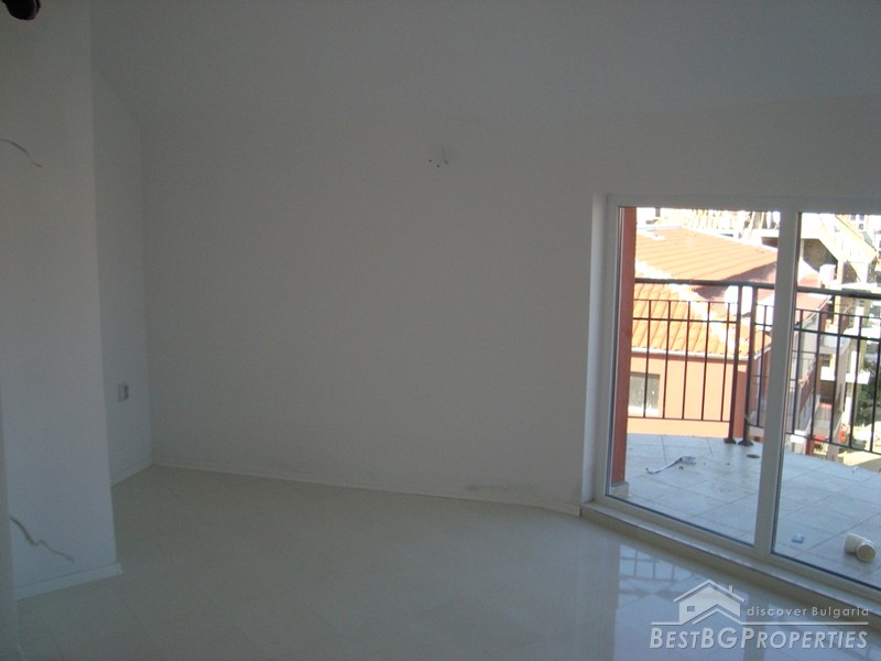 This new building is the consecutive project of a leader in the coastal developments in Sunny beach and Nessebar.There will be 5 floors with 14 apartments and 3 studios on top floor. Sizes vary from 44 sq m to 104 sq m. All apartments will be ready to move in finished with: *Bathroom and WC-equipped, faience, terracotta of your choice, accessories*Floorings- terracotta, granite-grease, inlaid floor of your choice*Kitchen-cupboards, sink, tiling above the sink, cupboard above the sink, extractor*Air-conditioner*Furniture of the apartment according the desire of the client for extra payment*PVC joinery*Walls and ceilings- ecological paints *Outer isolation of the building*Common staircase - granite-grease, metal railings, elevator*Terraces- granite-grease *Cable TV installation*Special security system- available at extra payment. Completion : Summer 2008