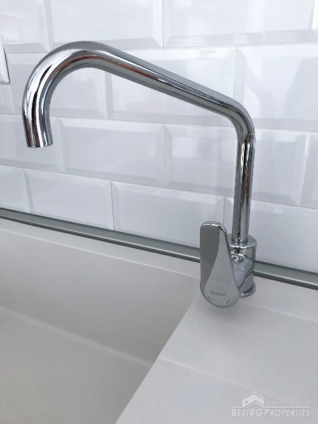 The apartment benefits with armored entrance door, security alarm, French windows with 5-chamber joinery. The flooring is laminate. The kitchen is fitted with MDF furniture. There is built-in refrigerator Liebherr, Bosch oven, hot plates, hood, dishwasher AEG, washing machine Gorenjie, granite sink Pyramis, etc. The apartment is equipped with Fujitsu inverter air conditioner. All appliances and furniture are under warranty!