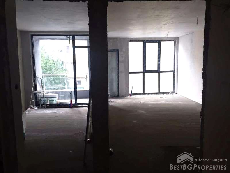 The apartment is finished according the Bulgarian standards - armored front door with multipoint locking, fine plaster and putty with thermal insulation, granite-finished terrace with aluminum railing, ready-to-install heating system and air conditioning.