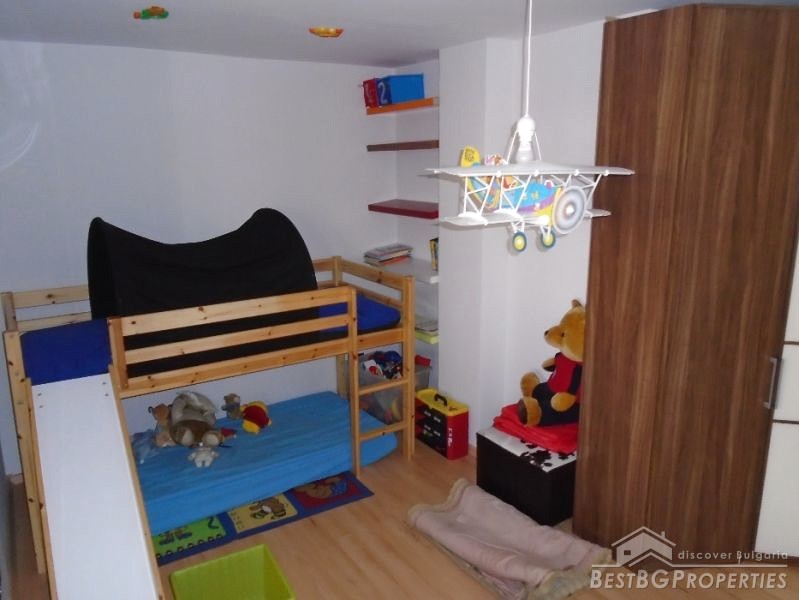 The building is new, luxury, close to “Zname na Mira” Square. The property is sold with all of the furniture. Everything is brand new. The apartment was used for only two months. It is non-transitory, consists of a living room with kitchen box, two bedrooms, bathroom with WC and a huge terrace. The exposure is towards east, south and west.