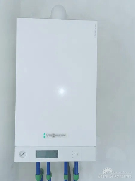 The property is offered finished to meet the Bulgarian standards - fine putty ready for painting and putty, doors that are not installed. The price includes mounted gas installation with Wissman boiler and radiators.