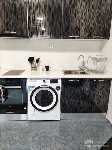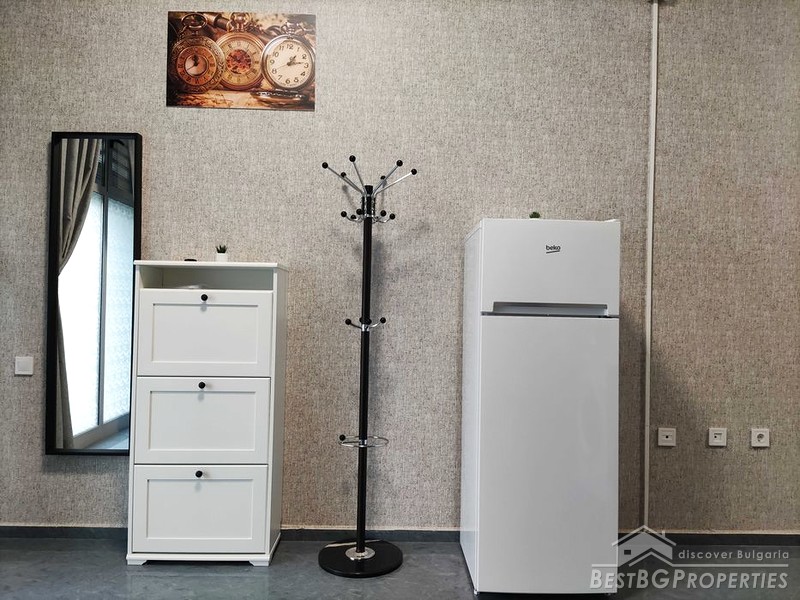 The building has top Location in Poligona quarter of Sofia. The apartment is on its ground floor, with direct access from the street. There is a convenient parking right in front of it. The apartment is equipped with brand new furniture and electrical appliances. It is ideal for living or renting. The apartment is secured with automatic grille with remote control.