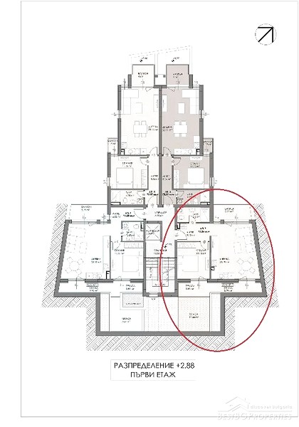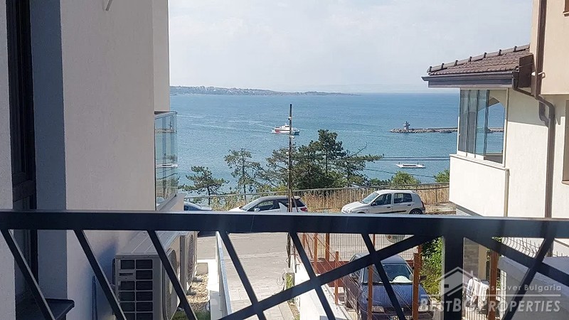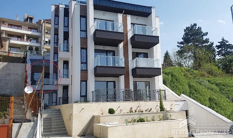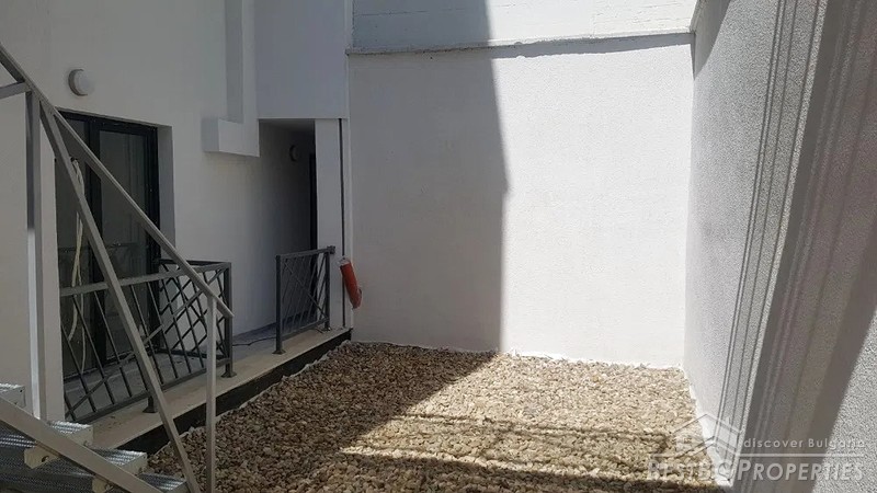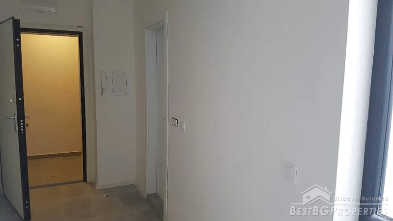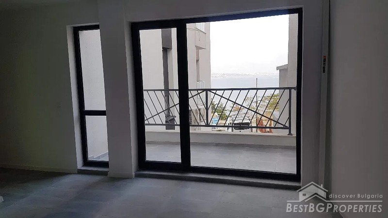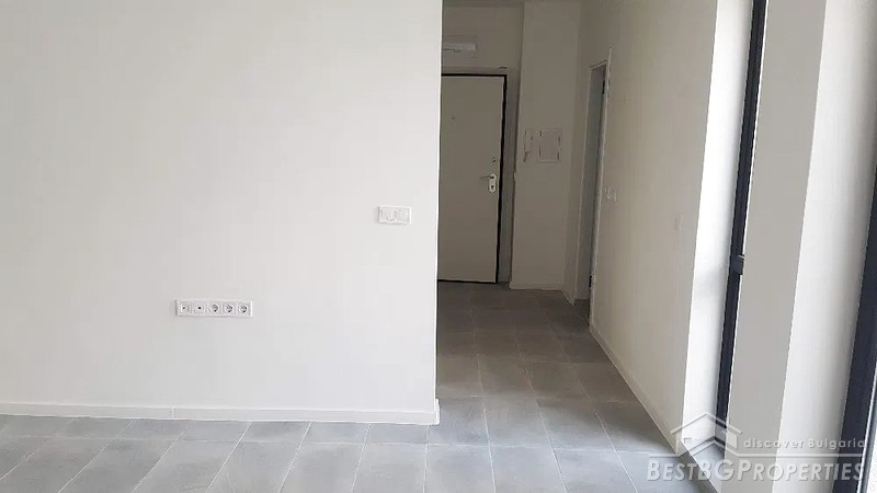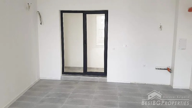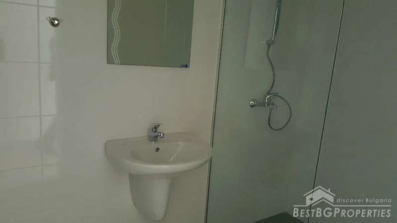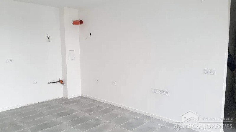 The building is new, 5-story, with an elevator and an underground garage. It is located in a quiet area in the new part of Sozopol, 10 minutes walk from the old town. The apartment offers nice sea views. It consists of a dining room with a kitchenette, a bedroom, a bathroom with a toilet, and two terraces. The apartment also has an adjoining courtyard with an area of 12 sq m. The price does not include any furnishing. The finishing however is turnkey. There are granite floors in the dining room and the corridor. The flooring in the bedroom is laminate. The bathroom is equipped with sanitary ware, faucets, boiler and a glass screen.
