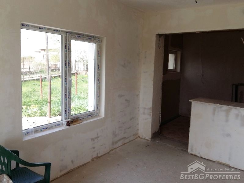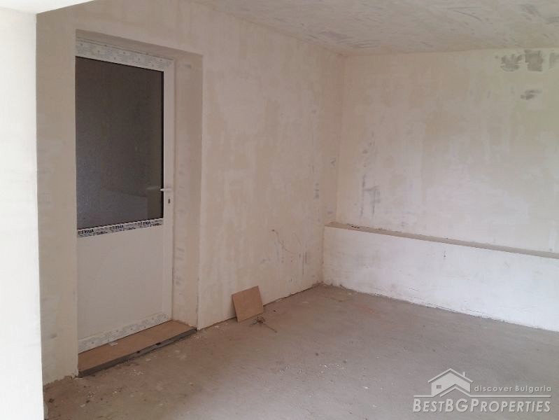 The house has three entrances and consists of: Dining room with kitchen box with countertop and a special place to fit all the electrical appliances including the washing machine, one bedroom, a corridor, entrance hall, one large bathroom (10 sq m), second bedroom.