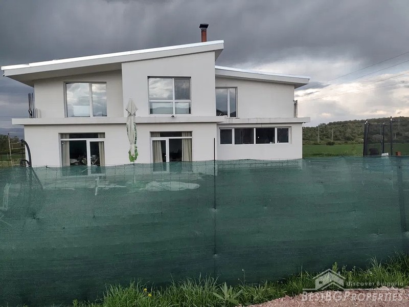 The house is very high quality construction. It is fitted with 10cm external thermal insulation, 7-chamber PVC joinery, built with Porotherm bricks. There is three-phase current. The bathrooms are finished with faience and terracotta. In the rest of the rooms, the floors are laid with either laminate or carpet. There is gas supply at about 100 m away. Can be spent immediately.