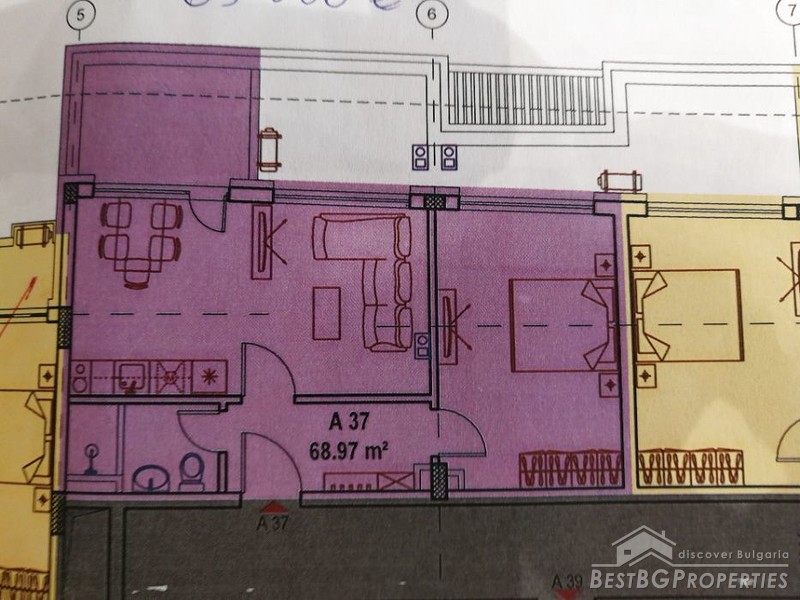It is located in a newly built luxury building with Act 16. The building is in the center of Burgas, next to Nova Poshta and opposite the Burgas Free University. It is 10 minutes walk from the beach. In the lobby of the building there will be a reception for renting apartments for overnight stays. The building has 2 elevators.