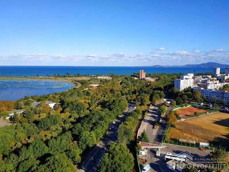 The apartment consists of a living room with a kitchen, a bedroom, a bathroom with toilet, a terrace, a corridor with a wet room for a boiler and a washing machine. The exposure is towards south / west / east. The property comprises with unique view of the sea garden, Burgas Bay, Burgas city center, Lazur Stadium and the Lake Vaya.