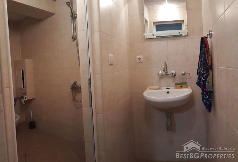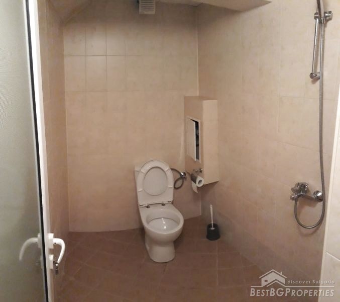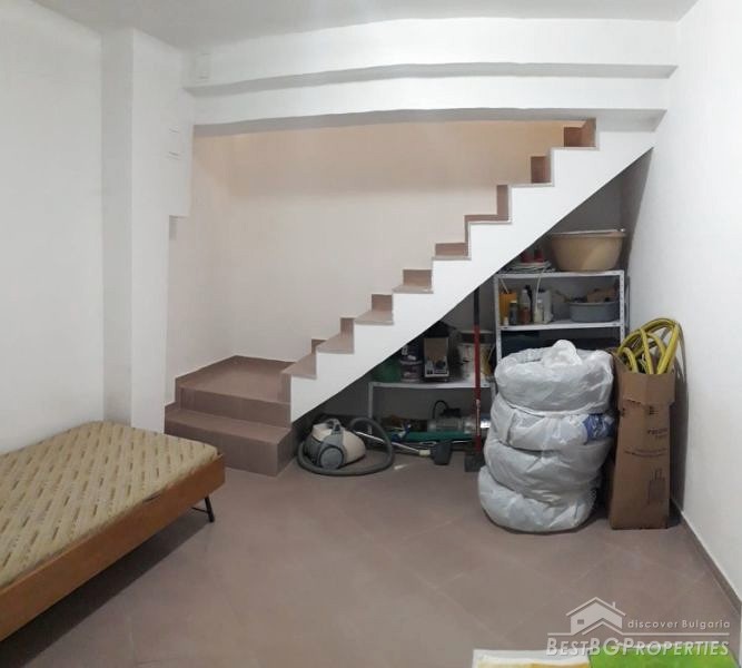 The first level is on the ground floor and has an area of 33 sq m. The second level is right under it, with size of 22 sq m. The total living area of the property is 68 sq m. The office could also be used as an apartment - on the 1st level there is the possibility of making a kitchen. There is already a sink and a chimney. The underground floor is suitable for a bedroom. It also has a small window. There is a bathroom with toilet and shower - fully finished.