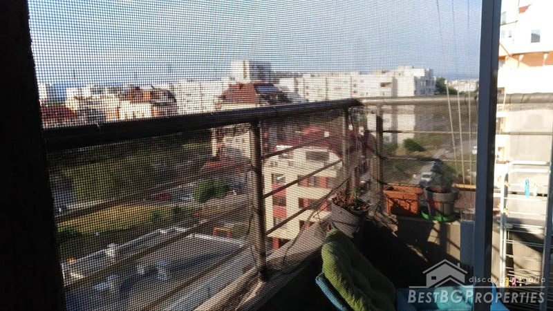 The apartment consists of a lounge, bathroom with WC, large bedroom with size 13.52 sq m, living room with kitchen box – 27.95 sq m and a balcony. The stage of completion is turnkey - laminate and terracotta, latex, high quality isolation, etc. The apartment comes with finished and equipped bathroom, kitchen, central heating with radiators in all of the rooms, aluminum window joinery, etc.