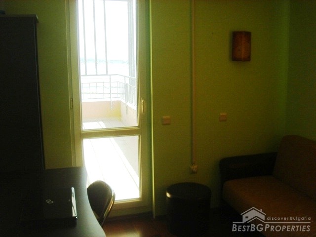 The apartment has total living area of 117.46 sq m and consists of two bedrooms, large living room with kitchen box, bathroom with WC, two spacious balconies with amazing view over the sea. The apartment is for sale completely furnished. In each room there is an air conditioner. In the price of the apartment there is included an underground parking and a storage premise.