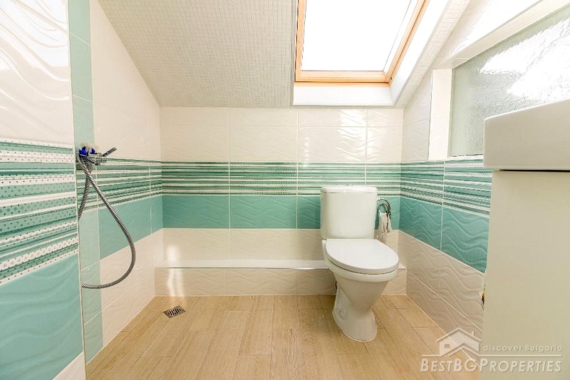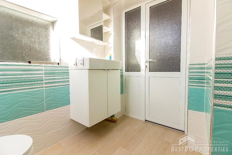The apartment is after complete renovation –turnkey, with new isolation and without furniture. It benefits with laminate floors, latex-painted walls, new doors, VELUX window frames, fully equipped bathroom with toilet +boiler, brand-new air conditioner with WiFi control.