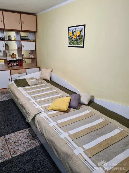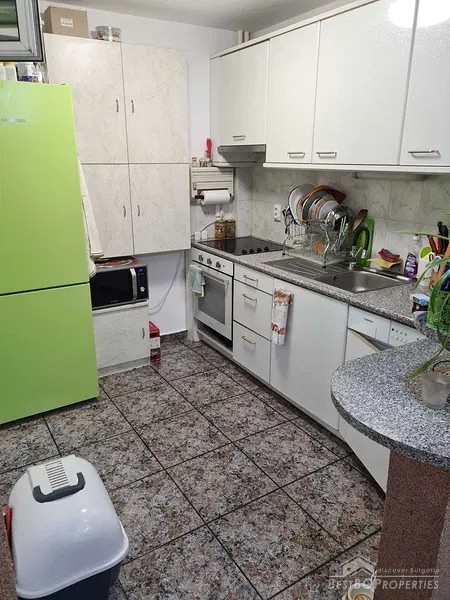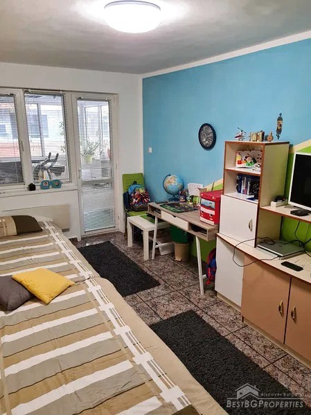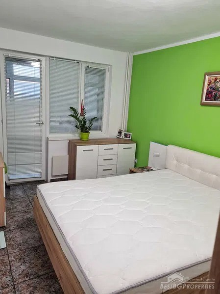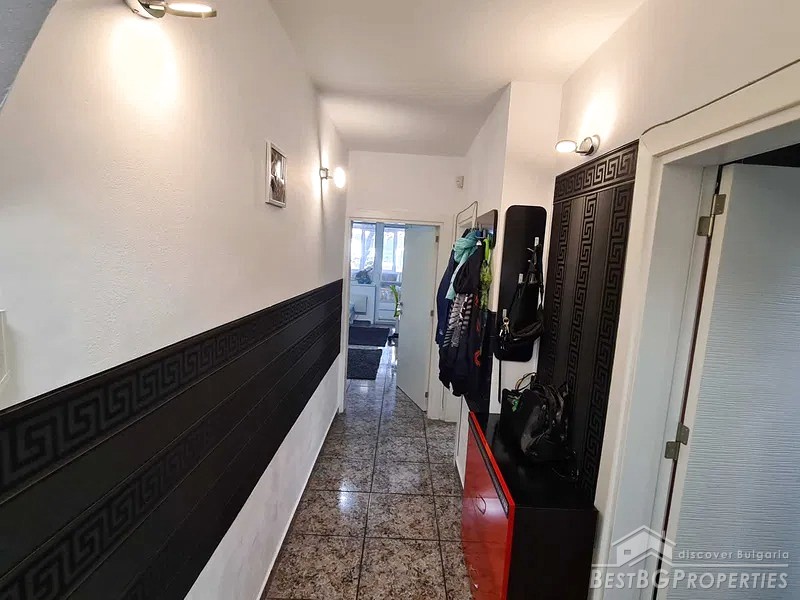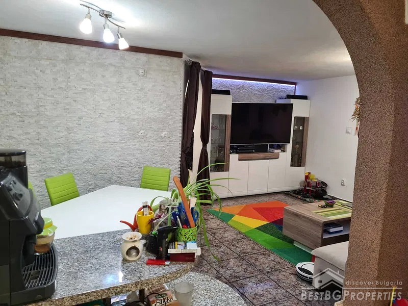We bring to your attention this fully furnished, renovated apartment with two large bedrooms and three terraces with clean living area of 106 sq m. The apartment is facing north-south. It is in a small and quiet building with two apartments per floor, with access control in Karshiyaka district of Plovdiv. In the immediate vicinity there is a kindergarten, school and shops.