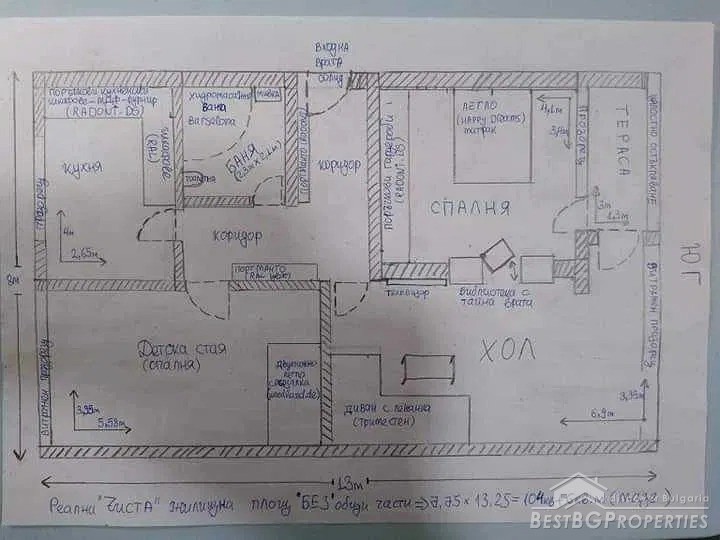 We present to you this spacious, two-bedroom apartment with an area of 104 sq m, located in the neighborhood of Gotse Delchev in Sofia.