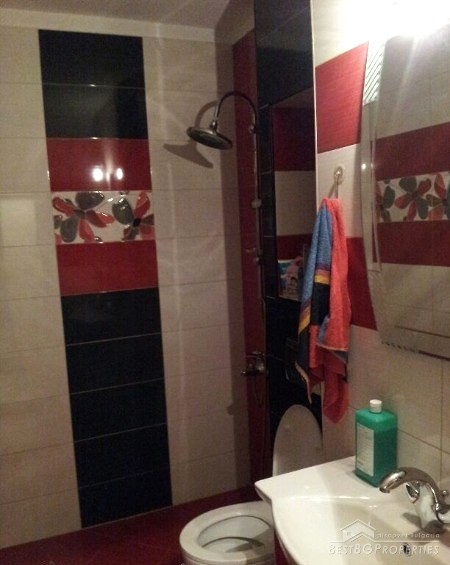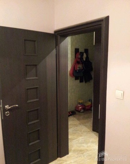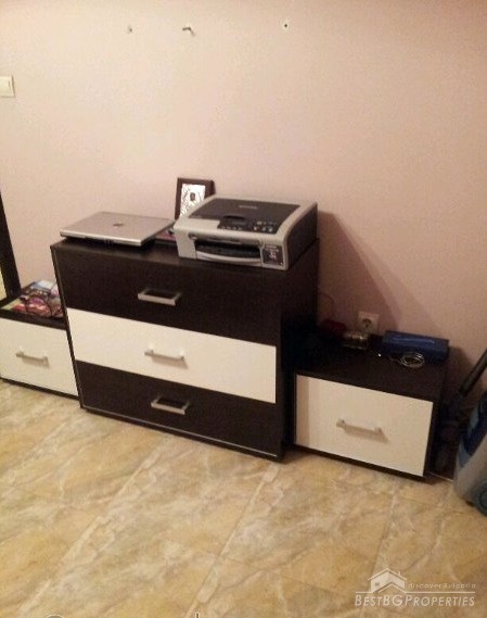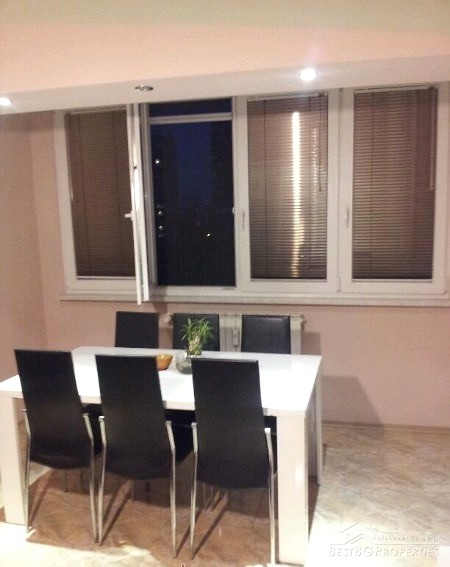 The apartment is super luxurious, renovated and fully furnished. It has total living area of 67 sq m, one-bedroom, converted in to two-bedroom. It has fitted kitchen "Concord", fully equipped with refrigerator, dishwasher, cooker with ceramic hob, etc. The furniture is also included in the price - leather furniture with “relax” mechanism, custom wardrobes. The finishing includes granite flooring, walls painted with washable latex and Venetian plaster. The front door is "Solid" with magnetic lock.